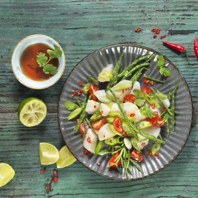 Die Muschel nicht nur für Muschelfans: mit schneeweißem, zartem Fleisch ist diese nahe Verwandte der Jakobsmuschel auch für „Neueinsteiger“ eine edle Delikatesse. Egal, ob kurz angebraten, gedünstet oder überbacken. Schmeckt besonders gut als Spieß auf Zitronengras-Stängeln und mit etwas Öl und Knoblauch angebraten.