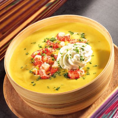 Curry-Kokos-Suppe mit gebratenen Flusskrebsen
